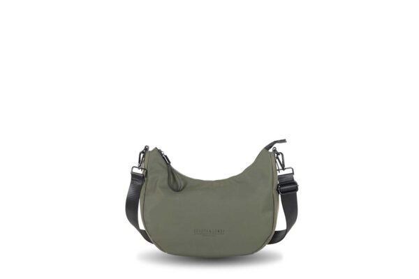 Bandolera media luna del diseñador Devota&Lomba con logo pequeño en el frontal y bolsillo trasero