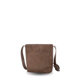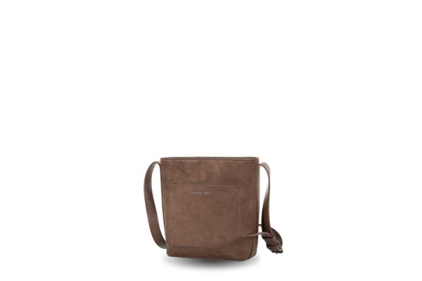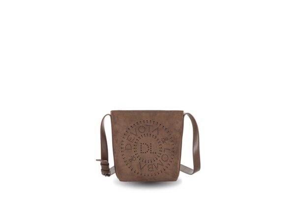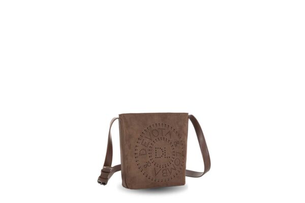 Bandolera antelina del diseñador Devota&Lomba compartimento central con logo perforado en la parte frontal y bolsillo trasero