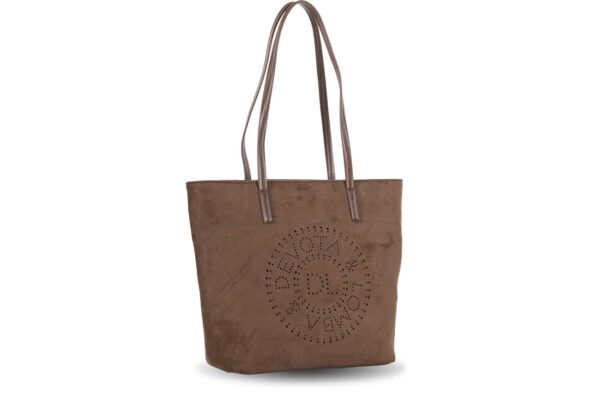 Bolso antelina del diseñador Devota&Lomba con logo troquelado en el frontal y bolsillo trasero