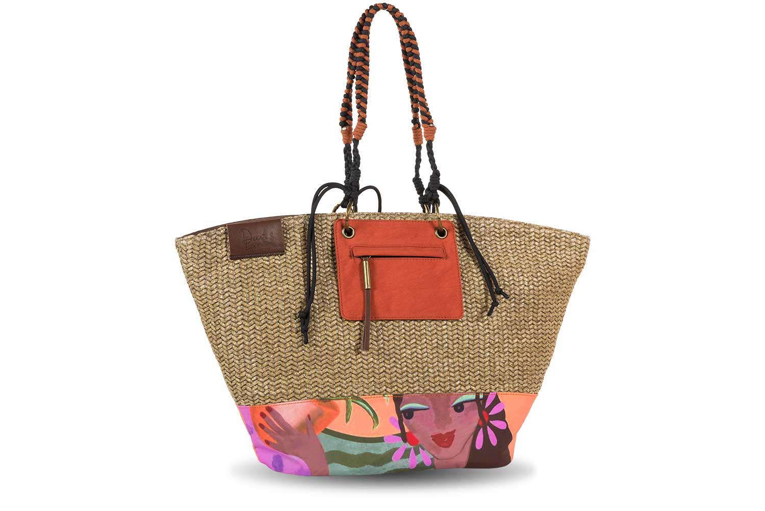 El modelo capazo Muse es un bolso amplio, práctico y muy veraniego, ideal para el día a día. Su diseño ligero en rafia y nylon incorpora un bolsillo interior extraíble.