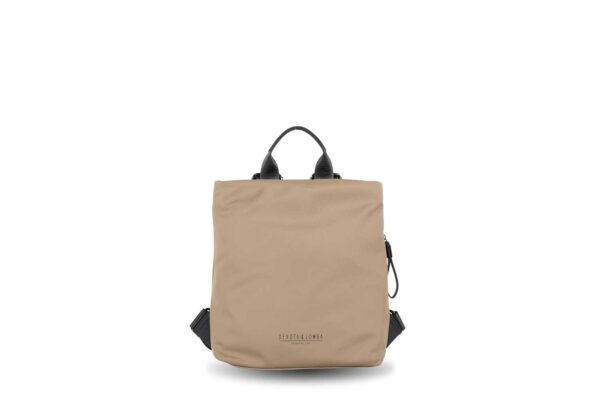 Mochila rectangular del diseñador Devota&Lomba con logo pequeño en el frontal y bolsillo lateral