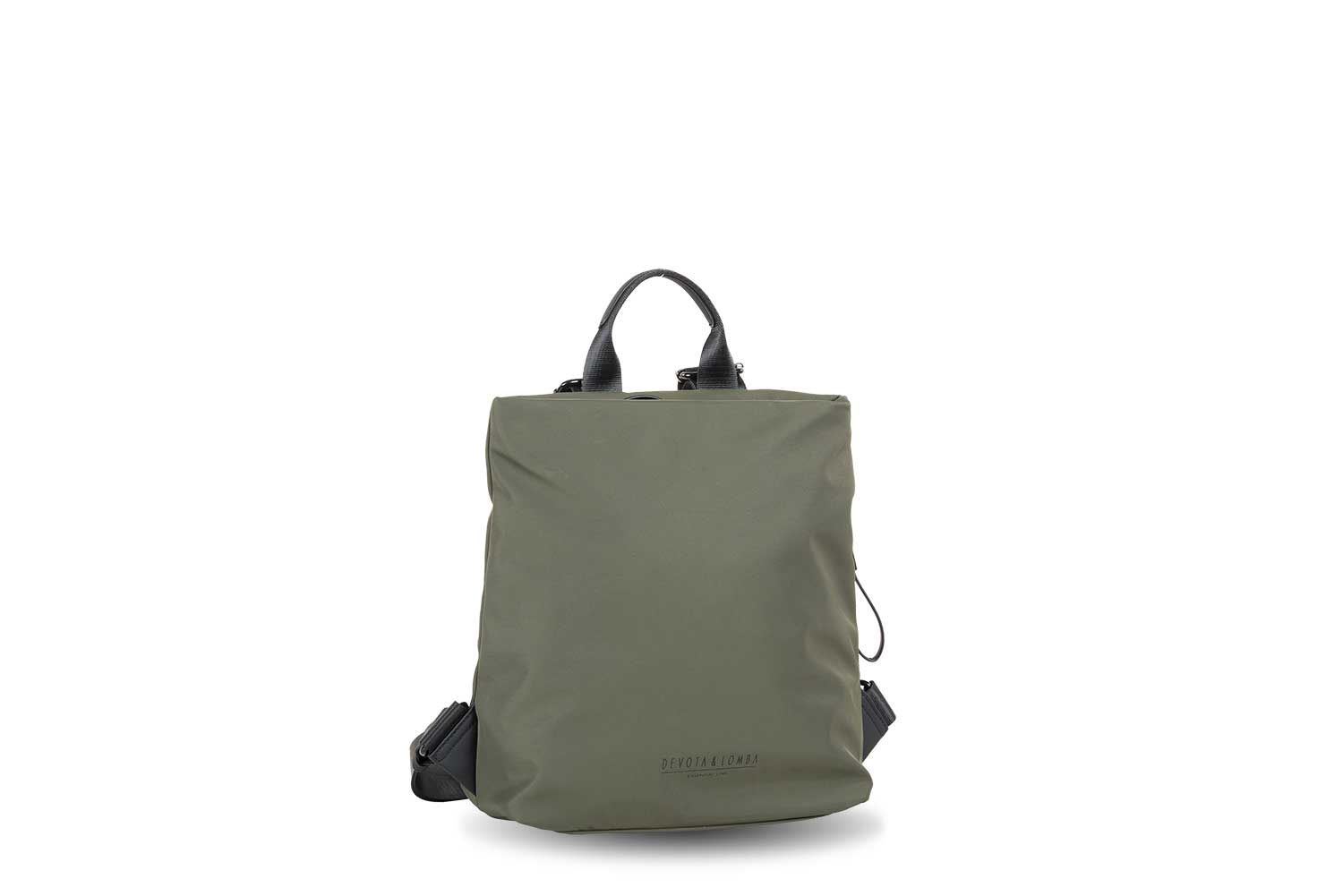 Mochila rectangular del diseñador Devota&Lomba con logo pequeño en el frontal y bolsillo lateral