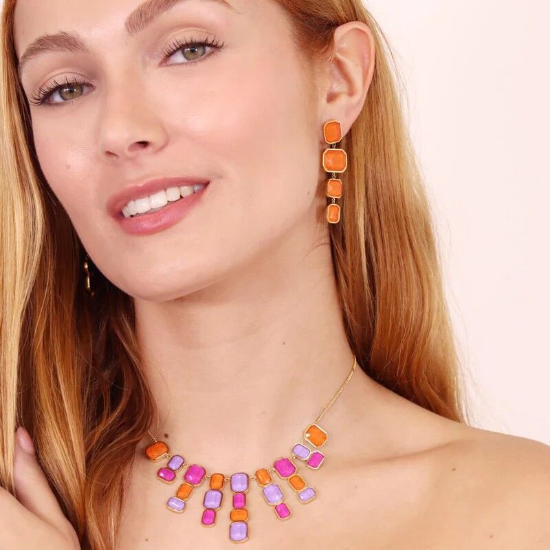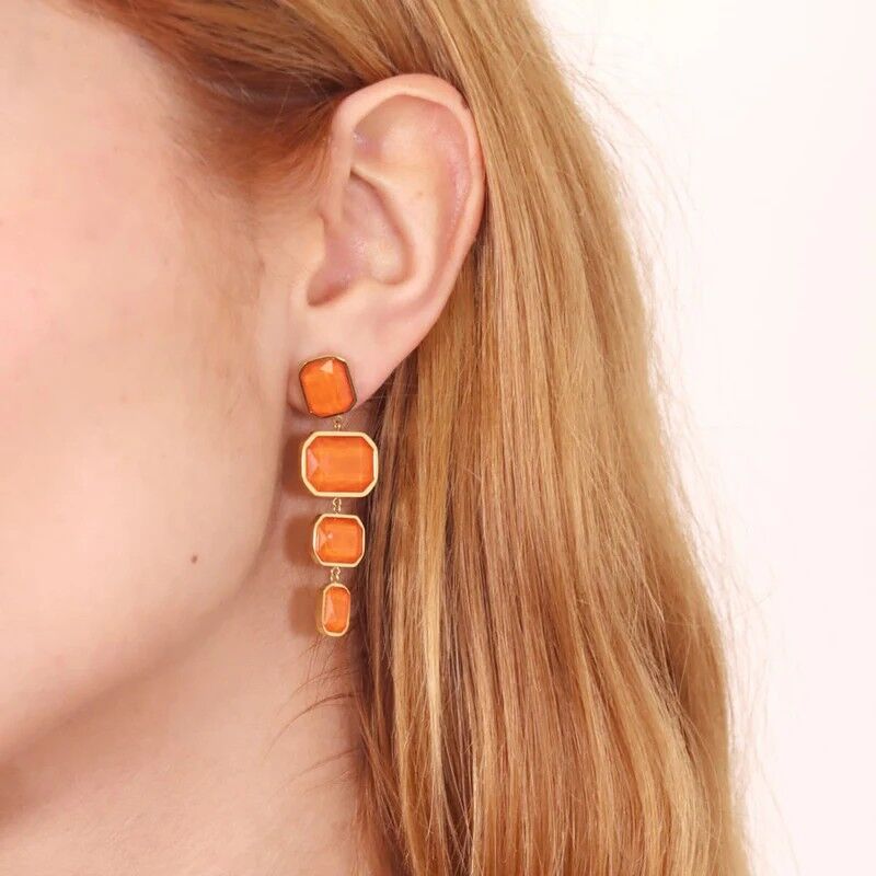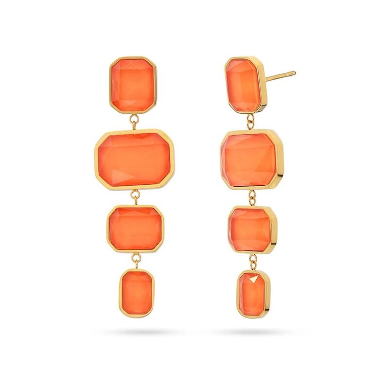 Pendientes largos de acero quirúrgico y baño de oro amarillo de 18 quilates, de la firma Anartxy con critales naranjas