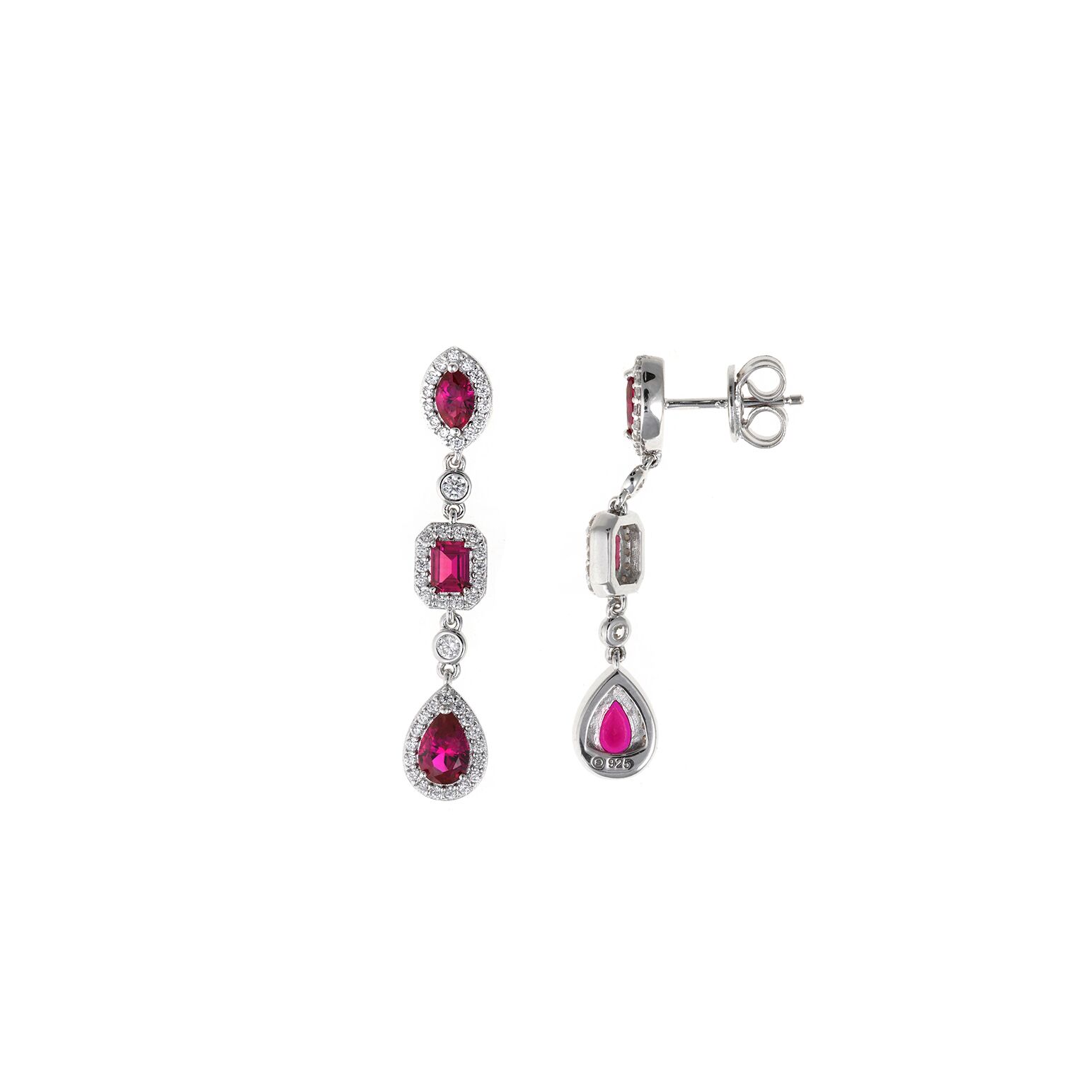 Pendientes largos de plata y baño de rodio de la firma española Salvatore plata, formados por una tira de circonitas rubí y circonitas blancas brillante. Cierre tuerca a presión.