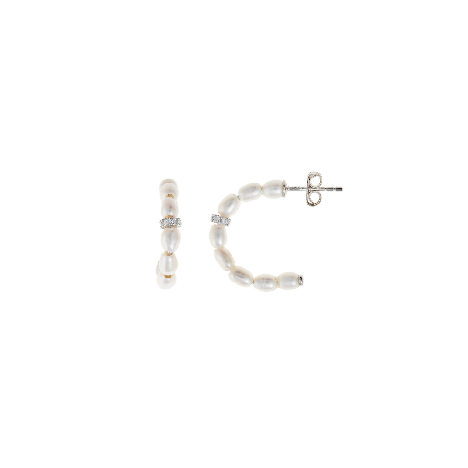Aros de plata de la firma española Salvatore plata con perlas. Cierre tuerca a presión. Colección Héritière