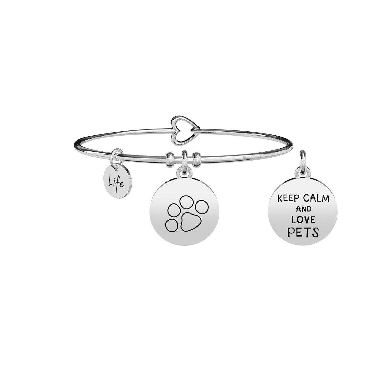 Pulsera de acero con colgante pet por una cara y «keep calm and love pets» por la otra.